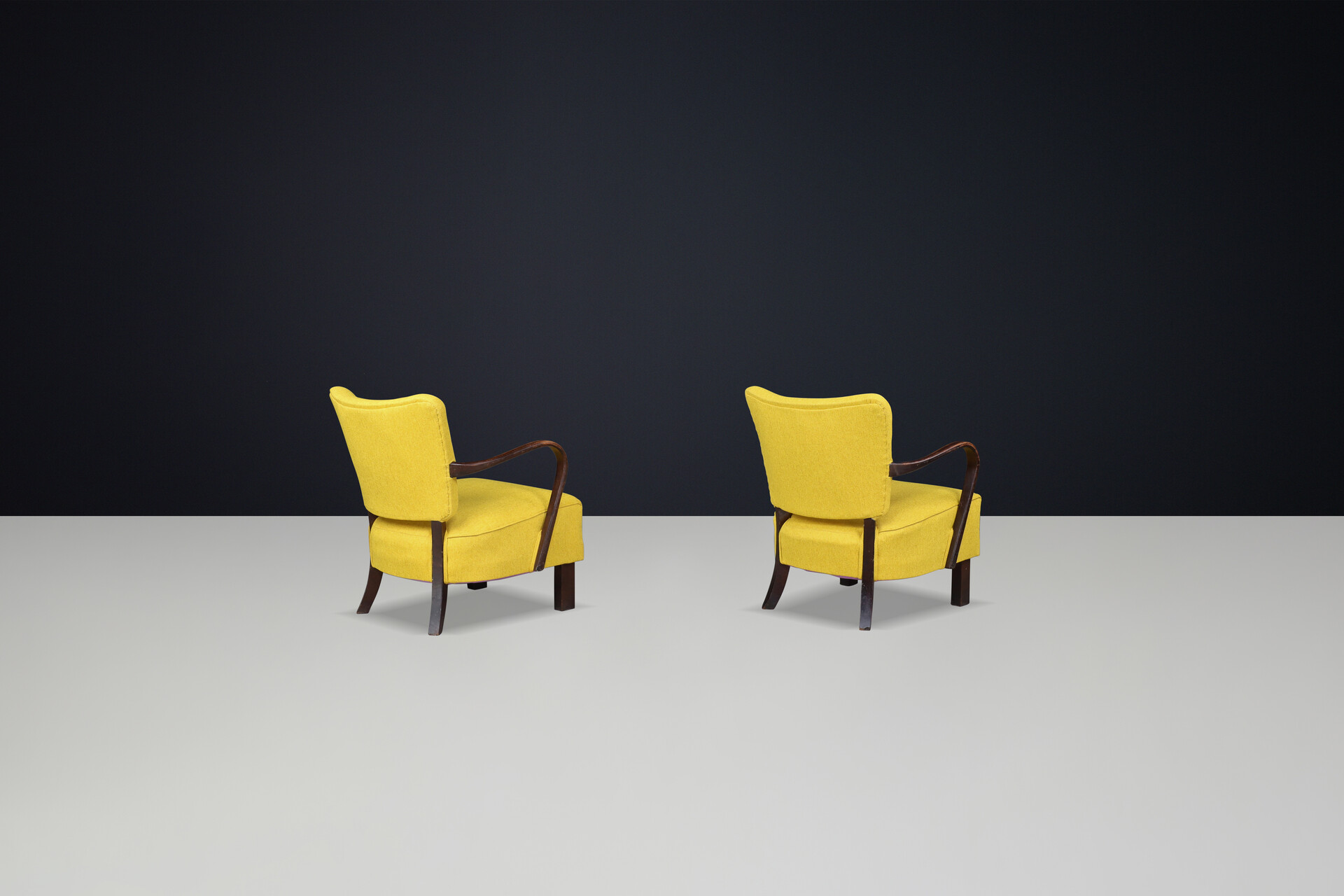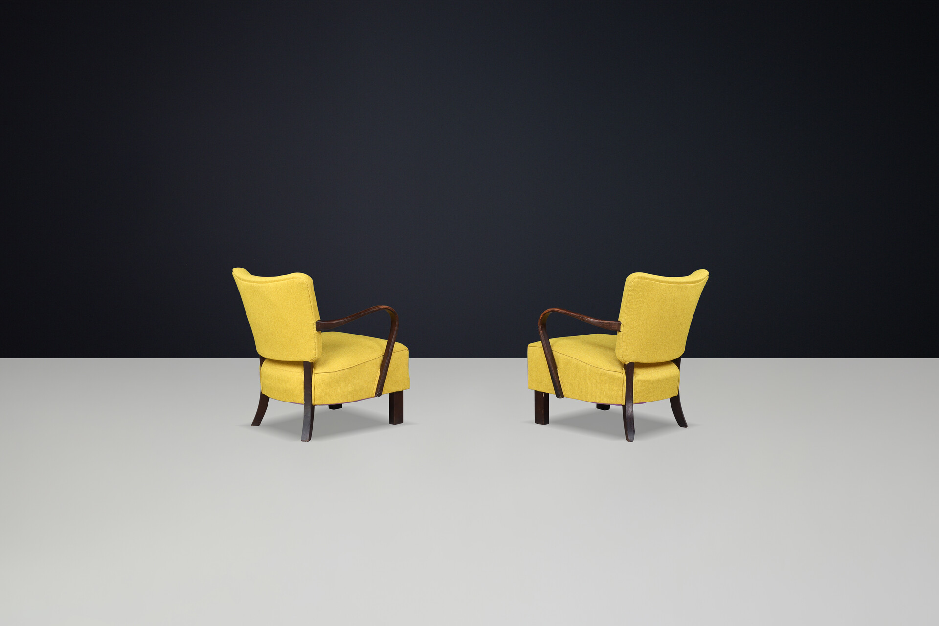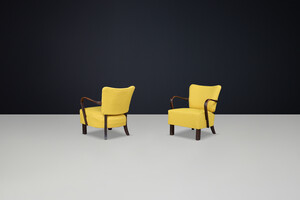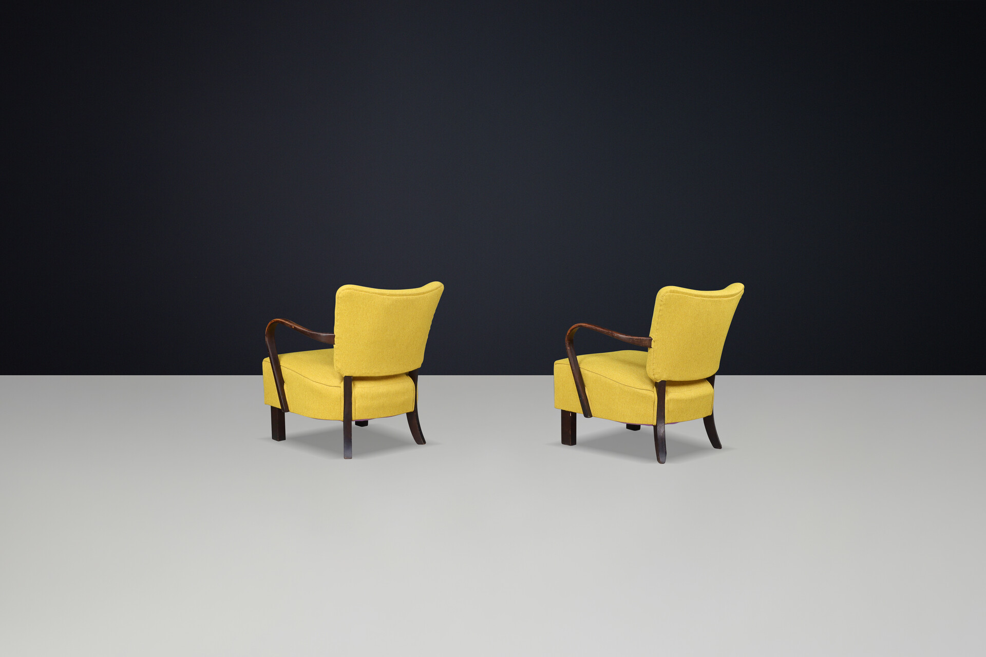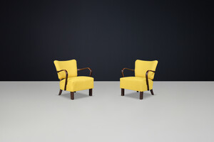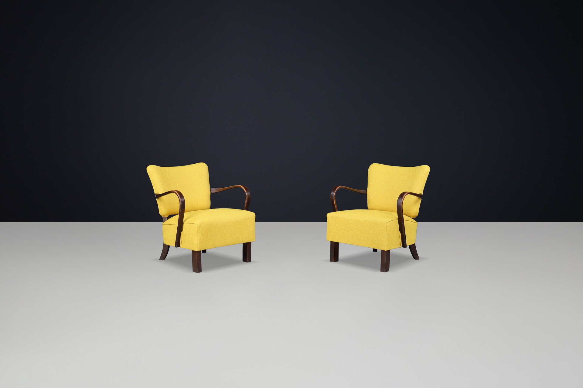 JIndrich Halabala re-upholstered patinated bentwood lounge chairs from the 1930sOrigin: