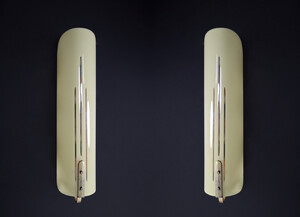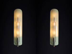 Large Art Deco wall lights, patinated brass, and opaline glass, Germany 1930s.Origin:
