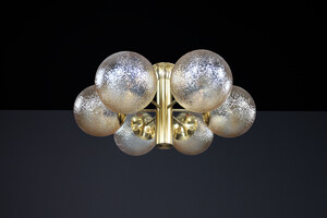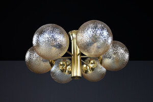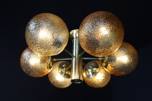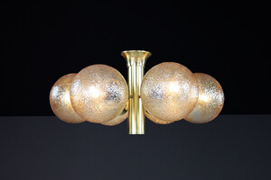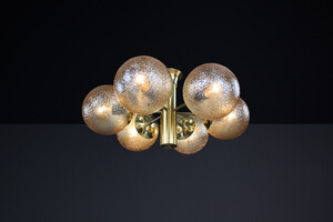 Mid century modern Patinated Brass Chandelier with six Gold-Colored Globes, Germany 1960s Mid-20th century
