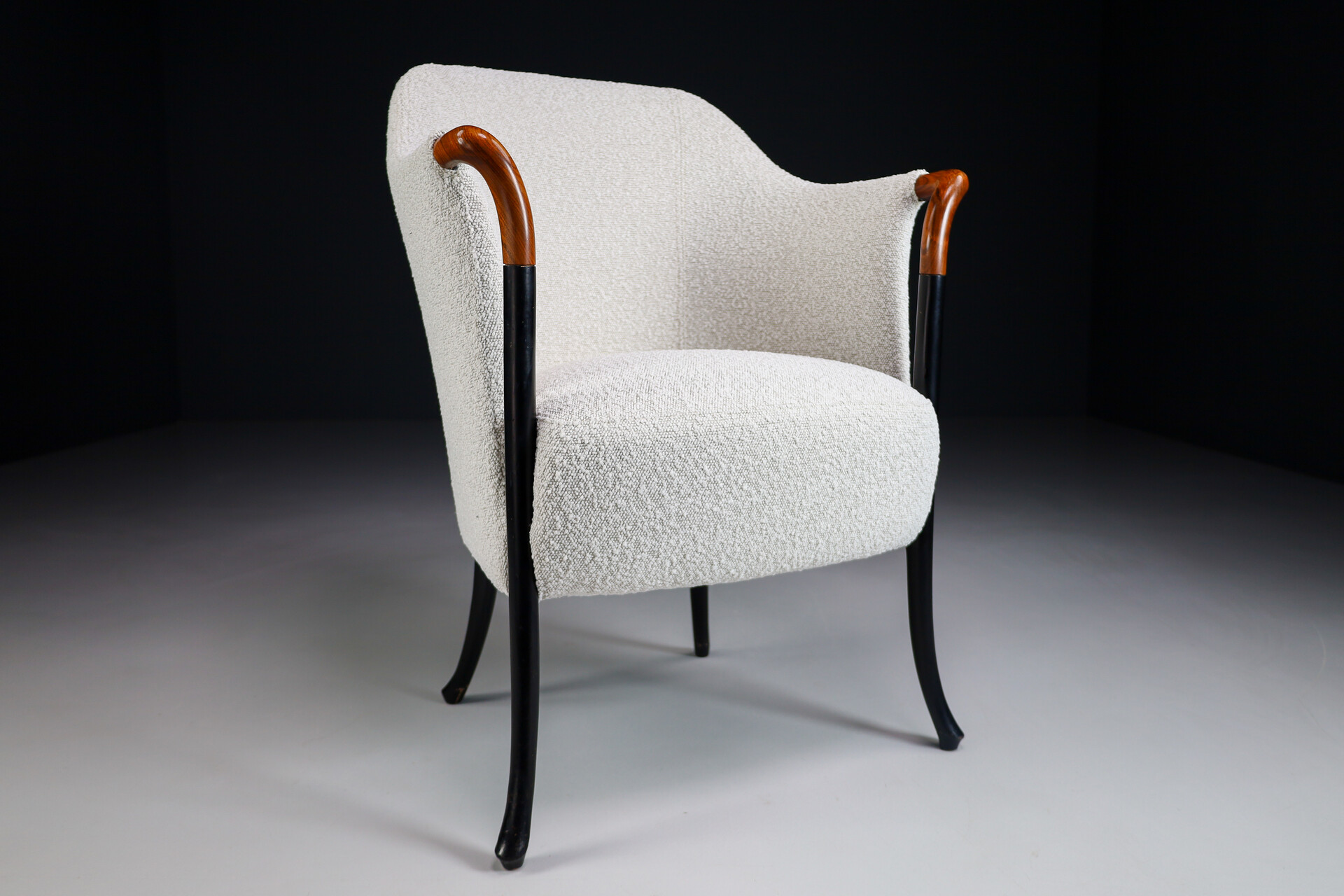 Modern Progetti Arm chair By Umberto Asnago For Giorgetti In New Bouclé Wool Fabric Italy 1980sSchool: